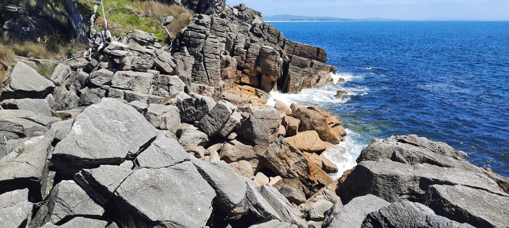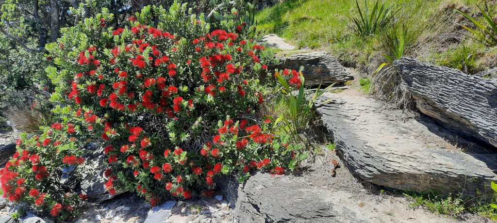 Wet shoes crossing the stream is no deterrent in the heat of today. I had barely commenced the walk when I chanced upon a family of Oystercatchers. Its not unusual to see a pair of mature birds but to see their chicks too is a first for me. There were three or four offspring and they were grey. Exactly the same colour as the rocks they were on so they looked like grey blurs. I’m pleased they have survived to this age already. The doting parents were screeching away even though I was quite high above them. The narrow track weaves its way up and down, between rocks, around and under trees and across well tended private land. Pohutukawa trees abound and many are in crimson bloom as we get closer to Christmas. Pancake formation limestone rocks a la Punakaiki tumble into the sea – in places you can camber over them to get to the shore or for views or fishing. The outlook for the first part of the walk encompasses Bream Bay and Whangarei Heads then as the coast turns south it is towards Bream Tail and out to the Hen & Chicken Islands. Private properties sit above the walkway with many interesting styles of homes and landscape tastes. Let’s just say nothing looks tatty in this end of the real estate market. The waves crashing on this piece of shore are red. I asked a Langs Beach local about this phenomenon and apparently it is a red algae like seaweed that gets washed ashore when wrestled from the ocean floor in storms. When it dies on the beach it gives off an inhospitable stench so the council come and remove it. The walk is signposted as 1.5 hrs plus there is a 45 minute extension around to Dings Bay. It takes me one hour with photo stops to the road down to beautiful Langs Beach, surely one of the most captivating beaches in New Zealand. A car stops in front of me – guy jumps out to take a photo. I ask if he wouldn’t mind giving me a lift a few km along the road as I’ve been on it before and it’s narrow. Just up to the Bream Tail Road please. He’s good for it. Chad, is a Regional Sales Manager for American Tobacco Company. Who knew they still existed? People obviously still smoke, and vape these days.