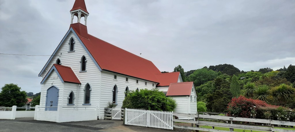 Today has more anticipated interest than other days as for the first time will kayaking, from Puhoi down to Wenderholm Regional park. Part of the Te Araroa trail, the 8 km paddle will save lives rather than the alternative which is walking along SH1. It’s a kayaking journey that I have wanted to do for years, decades really. We need the outgoing tide for the trip down so it was a late start as high tide was not until after 11am. Also nothing much happens in the pub until after 10am so all in all a restful morning. The Puhoi pub was however preparing this morning for the arrival of a couple of hundred Hells Angels bikers who were doing a poker fundraising day. The riders all must register, their licence photographed and police escorts present. We hung around hoping for the roar of the arriving bikes to blast into Puhoi but sadly they were still enroute. The local convenience store has good coffee and breakfast cabinet food where our hikers du jour congregated. Kat and Dean plus Johannes (JoJo) who has walked into town this morning from the campsite. Turns out yesterday when he stopped to get some water on the Dome track that he also had a bathe in the creek. It was no wonder I didn’t see him again yesterday. Sadly his father had passed away in Germany and the funeral had been yesterday. He was only 54. Poor guy that he couldn’t be home for the funeral and be with his family. Near the appointed meeting time we walked up to the Puhoi Kayaking Centre. It is opposite the impressive red and white Church of Saints Peter and Paul. Built in 1880 it has an exact copy of the altar painting as does the church in Bohemia, where the settlers originated from. There was no time to visit however as soon we were kitted out for kayaking, paid our $55 and were in kayaks on the river. It is tidal even to this point, the water pretty much stationary with its accumulated flotsam and jetsam from coming in. It was easy paddling with no tidal force nor head wind to detract from the tranquil experience. Instead we could focus on the selfies and pictures of each other. Surprising to me there were many kayakers already on the river. A bustling business today which was great to see. Once we left Puhoi village the river passed underneath the expressway bridge which is under construction and the current SH1 bridge. Then the river meanders through the farming land sometimes turning towards the highway where we could hear and see the bikies arriving. A deafening roar as a group of bikes would ride into town. All too soon we spotted the Norfolk pine tree that we were to paddle towards. The instructor said keep to the right otherwise you’ll end up out to sea. We followed to the letter although admitting that we didn’t see a definite right or left. It’s probably more pronounced at a lower tide. We pulled ashore at Wenderholm, the staff were there to assist us out of our kayaks and our packs had been transported already. At this point we separated again. Kat and Dean had done the Auckland section and would be moving further south. Dion was off to visit Tirititi Matangi and JoJo had remained in Puhoi to catch up with other hikers. I set off alone past Couldrey House and into the bush block above Wenderholm. Although the original part of the house was built in 1857, it was the Couldrey’s who donated Wenderholm as the first regional park in Auckland and bequeathed the house in estate. I followed the Perimeter walk from the house. The path is well formed with wooden stairs where required and many information boards describing the history of the area plus screeds about the flora and fauna. I particularly liked the boards which were mounted near ground level for children. From the summit there is a particularly fine view of Wenderholm, gulf islands such as Kawau, the Barriers and even to Coromandel peninsula. The perimeter track then leads down to the Waiwera River which is crossed by the road bridge leading into the village. It is sad to see the Waiwera Thermal Resort lying idle when it’s hot water has been a healing attraction for hundred of years. The resort buildings really do look forlorn and the village has none of the buzz about it when the pools were open.