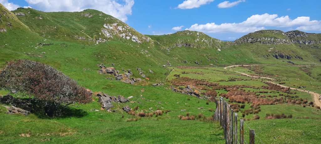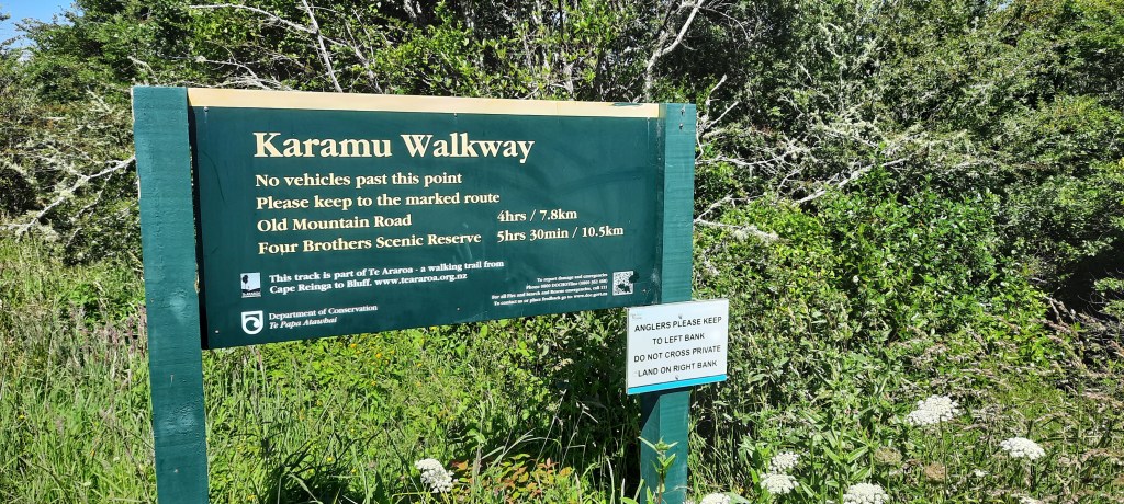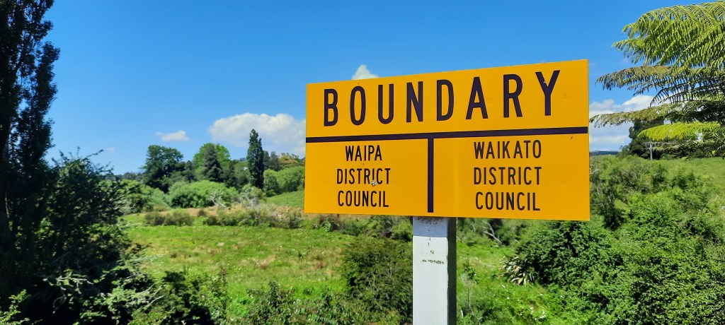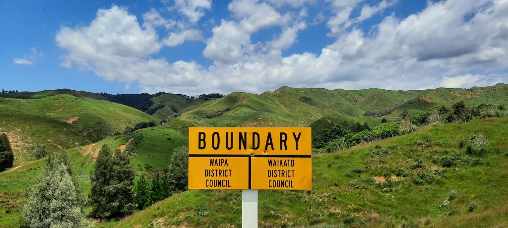 Refreshed I head out again, this time along the main road to Raglan. It’s busy. The draft from a big truck blows my cap off and into a deep drain. The sides are near vertical so I have to ditch my pack to clamber down for it. I’ll hold onto it next time. Luckily the walk on this road is short when the trail turns into Te Pahu Road. I miss the sign that indicates the trail goes off the road and along the river however I can see on my app that it rejoins the road further down so I’ll stick to the road thanks as it is quicker. In subsequent conversations with hikers it appears I am not alone with this small deviation. The road meanders through nice countryside with maize on both sides. Near Old Mountain Rd there is a sign indicating change in councils as I step into Waipa. Old Mountain Road branches off to the right and I follow this for four km from the flats and up towards the limestone peaks. A cyclist stops for a chat after whizzing by me. He’s interested in the TA and had ridden from Cape Reinga down to Bluff in February 2020 – it only took 16 days. Here I am almost a month into my walk and not even near half way. Further up the road I pass another council sign so somewhere back down the road I must have crossed back into Waikato unawares.