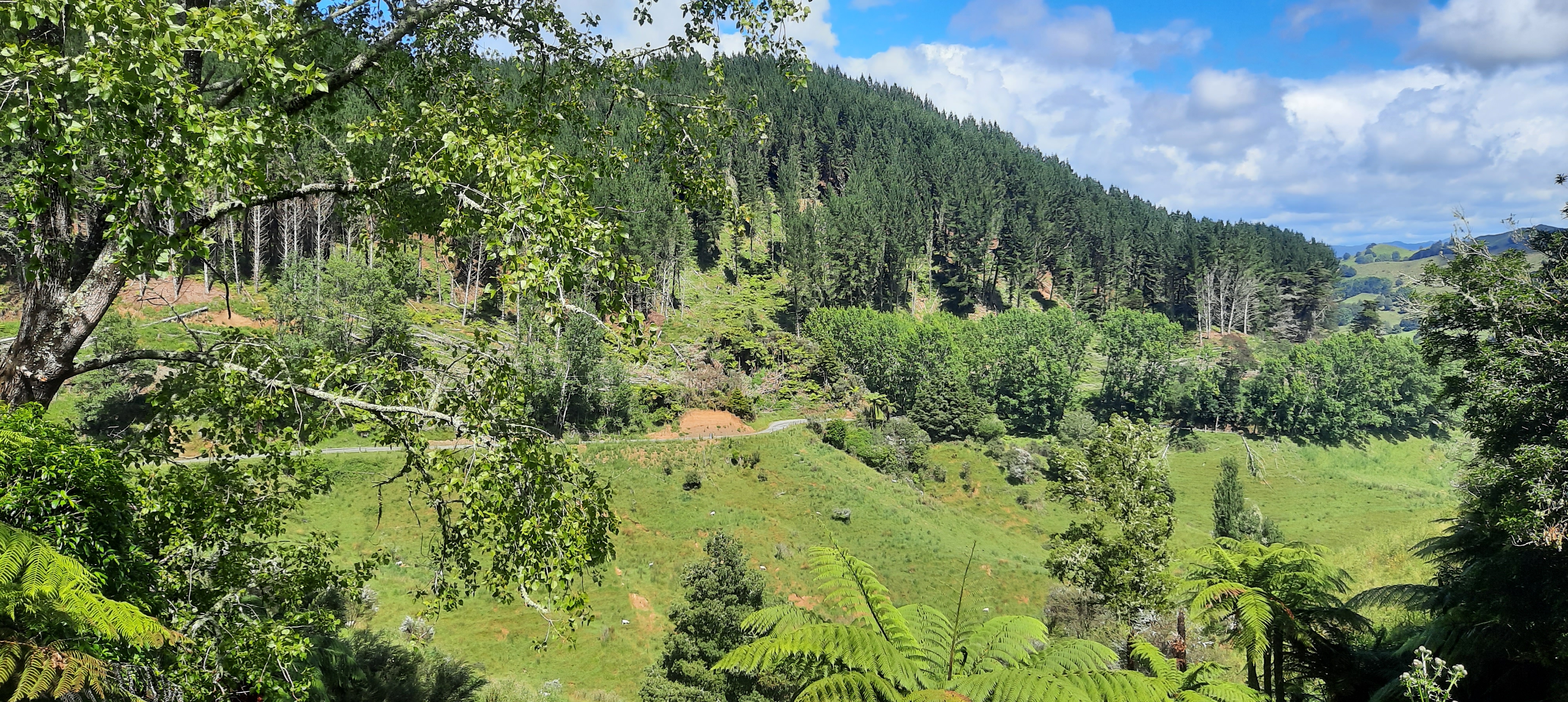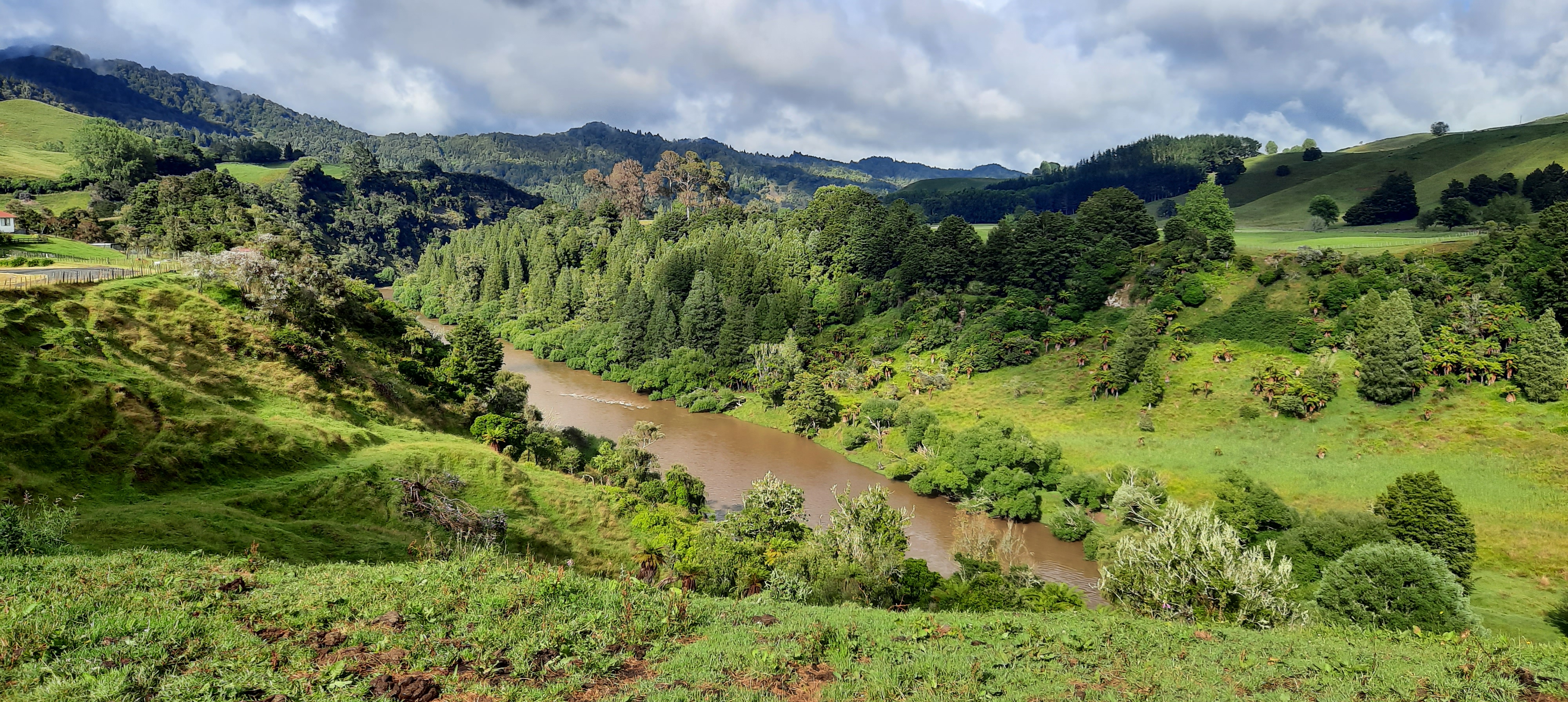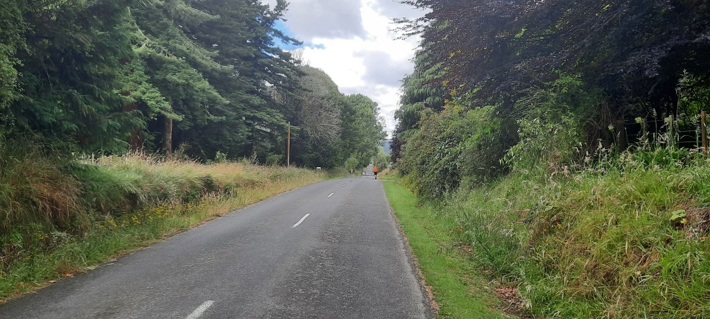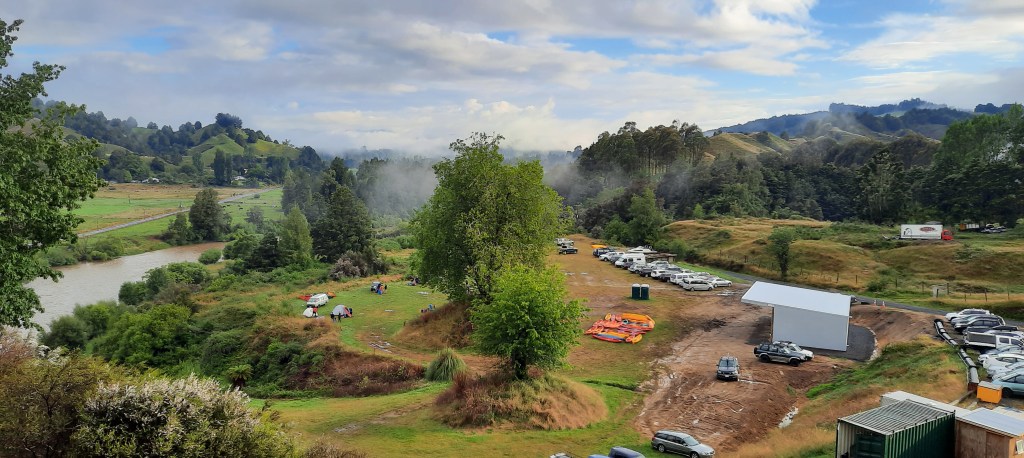 The rain started again in the early morning so I was awake and hoping it would abate by the time my alarm went off at 5:30am. There was a canoeing safety briefing from 6:20am starting with tea or coffee and delicious home made bread. Although I wasn’t leaving for the river today I wanted to attend the briefing anyway to get the lowdown on the river and canoeing safety. It was all over in less than an hour after which time I went to grab my pack whilst todays group were donning their life jackets and roaring out in the Whanganui Canoe hire vehicles with their canoes in tow. Jonathan is ready to go as well so we set out together towards Owhango. Today we will follow the Hikumutu Rd almost all the way. Jonathan has not walked for a few days since canoeing and I am sporting a sore achilles so I’m a bit wary of putting too much pressure on it especially as I have had the recent break from walking. Fortunately it is only 24kms for todays walk and it is on the road all the way. I’m keen to see what the countryside is like today having only driven the highway between Taumarunui and Owhango so it will be interesting to walk this alternate route. After the heavy rain of the last few days there is a lot of streams running along the side of the road however the clouds are parting and with it is the anticipation of a blue sky day. There is no traffic and its just us and the sheep and cattle this morning.