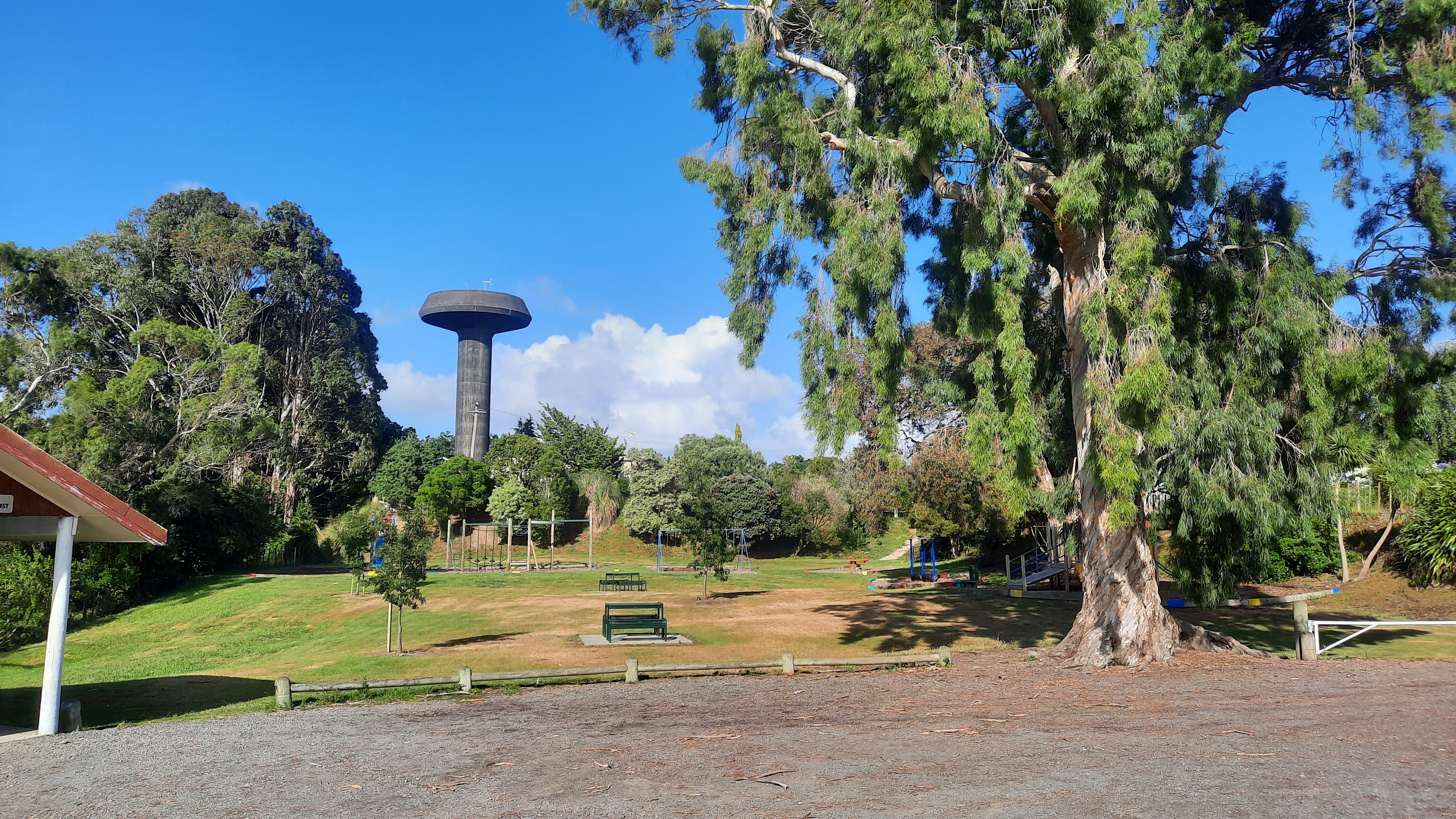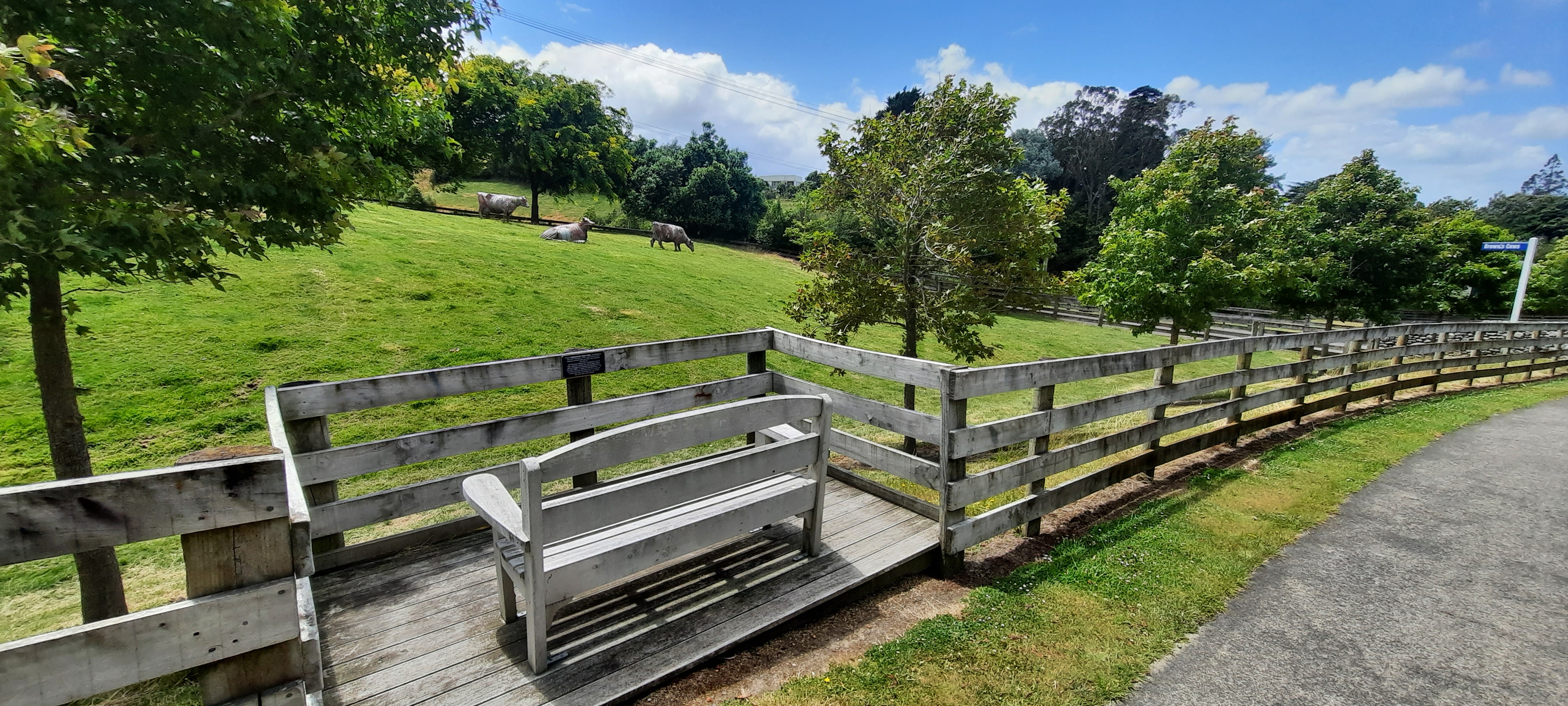 Loïc is off to work at Ohakea early leaving me in charge of locking up. I have a cooked breakfast treat at a local cafe then don my pack for the 20km walk to Feilding. It is fun reading the bull related signage everywhere even on the way out of town. The trail crosses the Rangitikei river by way of the SH1 bridge then detours on backroads to Feilding. It takes me a good few minutes waiting for a gap in the traffic before I can cross the highway safely. It is a shame that the trail doesn’t cross in front of the air force base, however I understand that there is less to see from the road since a earth wall has been constructed. I make do with a helicopter overhead and an airforce jet flying about. I was concerned that the road walk would be dull like yesterday however I’m pleasantly surprised with the variety of sights along this stretch to keep my interest up and mood buoyant. I stop to look at the airforce tramsmitting station with its humming dishes pointed to the sky. Signs warn of trespassing due to radiation. I’m curious to know what would be emitting radiation at any level, dangerous or not? The gate is locked so I don’t venture in to find out. Soon after I am at Mt Lees reserve. Gifted to the council by the late Ormond Wilson, the reserve and homestead he developed over a period of 70 years, Mt Lees is a unique reserve comprising gardens, exotic & native trees, picnic areas and walking tracks. Located on its grounds is the historic homestead and two summerhouses. There is a fascinating autobiographical account from Ormond Wilson detailing his trials and tribulations in developing the reserve.