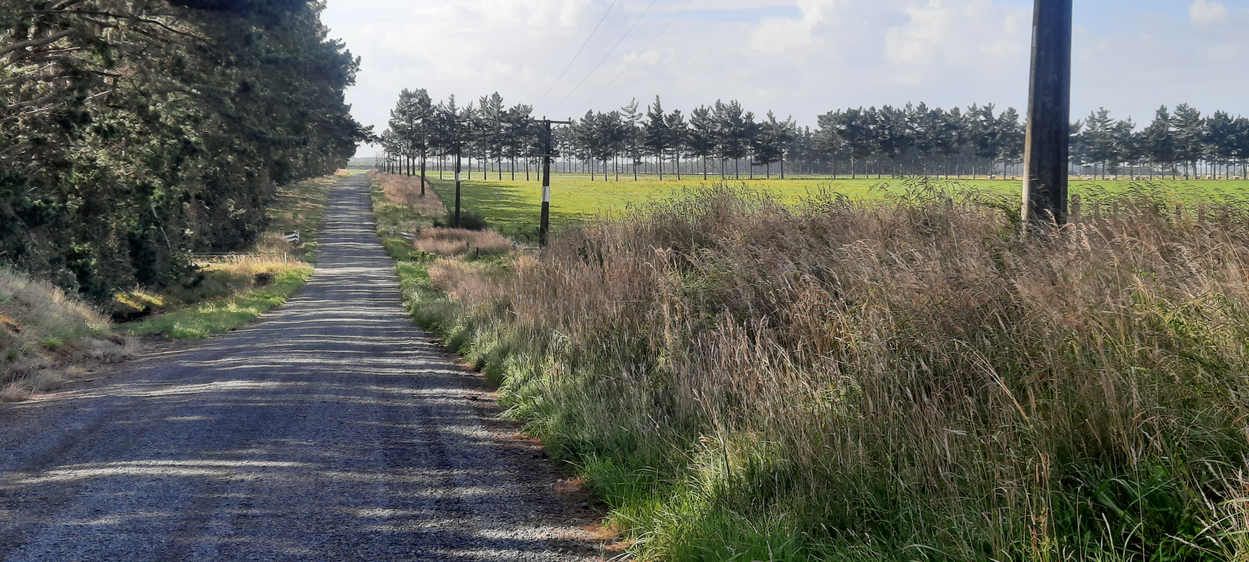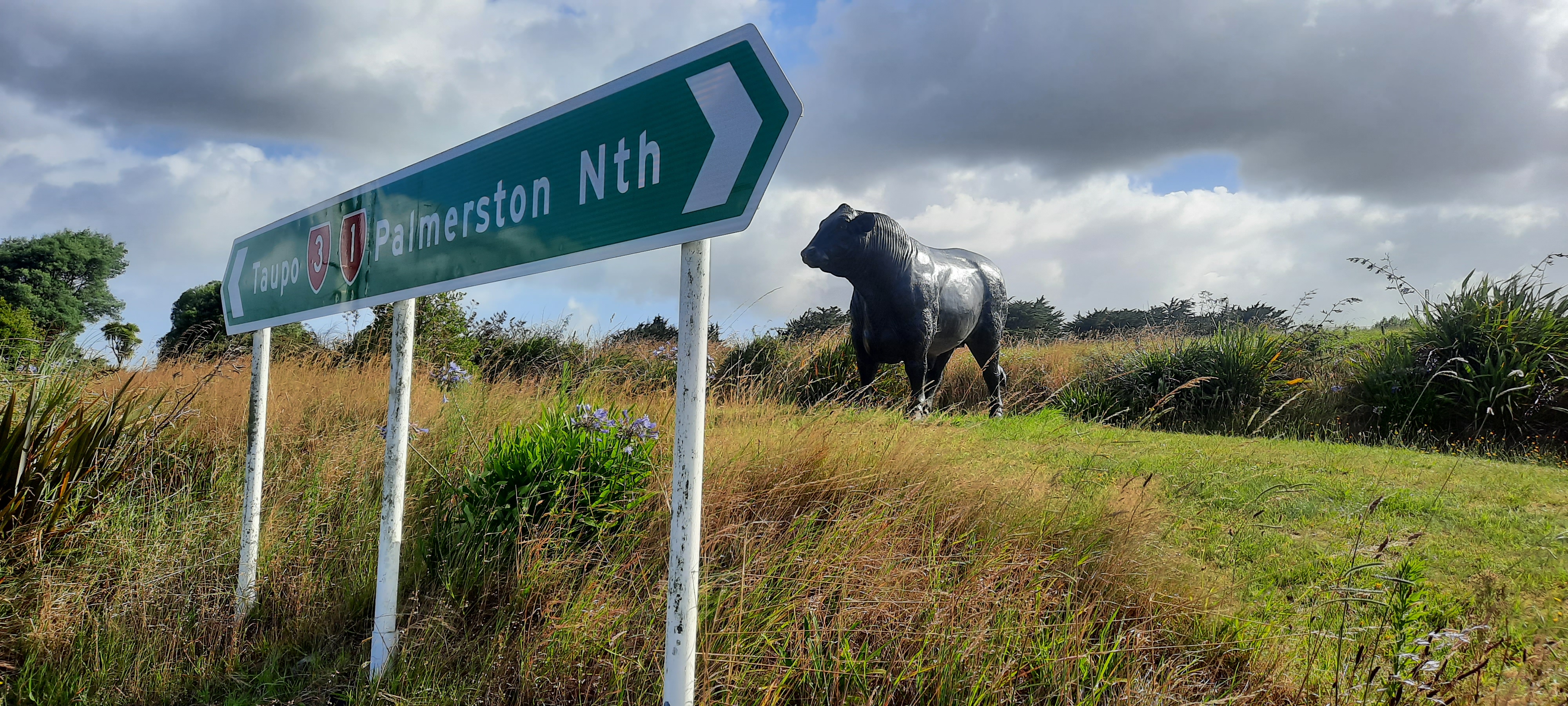 Soon I am on the home stretch into Feilding. There are easy berms to walk on and I have a strong tail wind to push me along. At one point there are roadside plum trees that I can reach and have a fresh fruit snack. Shortly before Feilding the trail takes a right turn with the intention of potential views across the plains to Palmerston North and a view of the Tararua Range. Today they were shrouded in cloud however there was a new development of houses to look at instead. On the road down into town I came across another plum tree and some corrugated iron cows in the paddock. Feilding was quite sleepy today with little vehicles not people about. It began to rain so I found the ice cream shop before taking a look around town. In the afternoon John came to collect me. John is a trail angel and keen hunter and hiker. I had a lovely time with him and family. He is planning to do hike Te Araroa with his daughter in a couple of years.