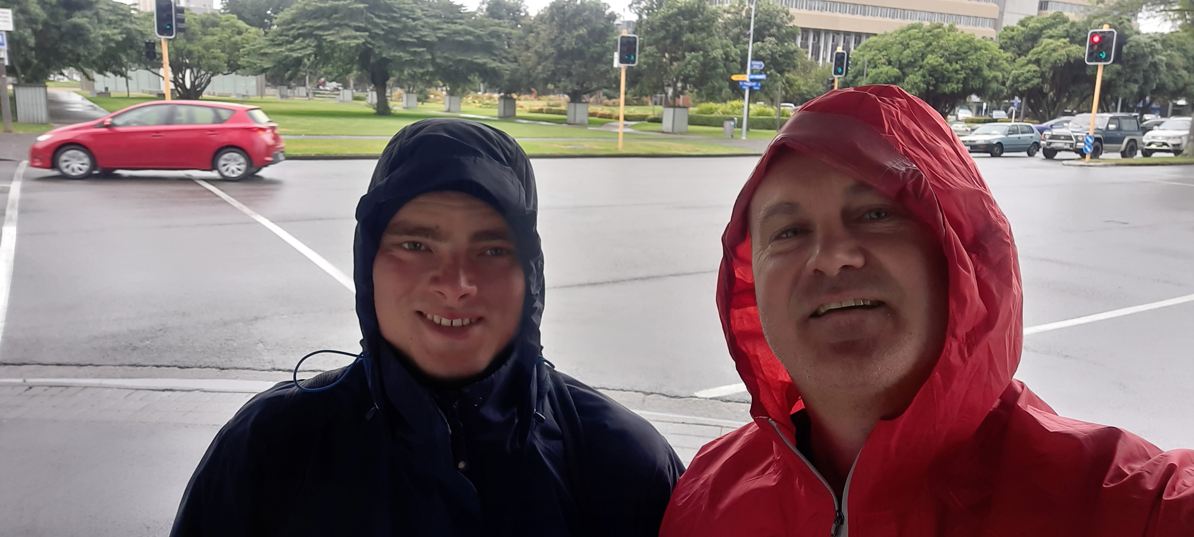 It’s raining on Tuesday morning. John offers to take me to Palmerston North, where he works, but I decline as I don’t mind giving the walk a go today despite the weather. In Feilding the rain increases and I am buffeted by the wind blasts. As I near the train station the bus to the city arrives so I think bugger it, I’ll get a ride. The $2.50 fare is worth it as soon after I’m dry in Palmy and have the day to do errands. My shoes need replacing as does my shirt and I want to visit the DOC office to determine how to cross the Tararua Ranges to the Wairarapa. It takes me much of the day to accomplish however I have a new merino long sleeve shirt (no tears holes and rips) and received excellent personalised assistance from a DOC officer on routes in the ranges between Levin and Greytown. In the afternoon I walk to the home of my trail angel for the night. Mark is the brother of John, who I stayed with in Feilding. Also tonight more hikers are in need of accommodation. Later today we had Elina Michael Fabrice Seth and Peter arrive. The washing machine is soon full of smelly clothing and dinner is prepared of roast chicken spuds and veges for hungry hikers. I’ll only stay one night, preferring not to overstay my welcome with such a generous trail angel as Mark. On Wednesday morning I catch the local bus into the city as it is pouring with rain. Tonight I have booked a room at the Central Square Hotel so I drop my pack off and get about my business for the day. Much of the day is spent at the library doing my blog. Also I haven’t heard back from Salomon about my shoes so I bite the bullet and buy a pair of Asics which I hope will last me through the Tararuas and the south island. On a whim I stop in at Bivouac as they stock Icebreaker clothing. My socks have small holes so I take advantage of their free sock replacement policy. Nice fresh socks on I return to the hotel to catch up with Jojo and later this evening a drink with friends Glenda and Bryan.