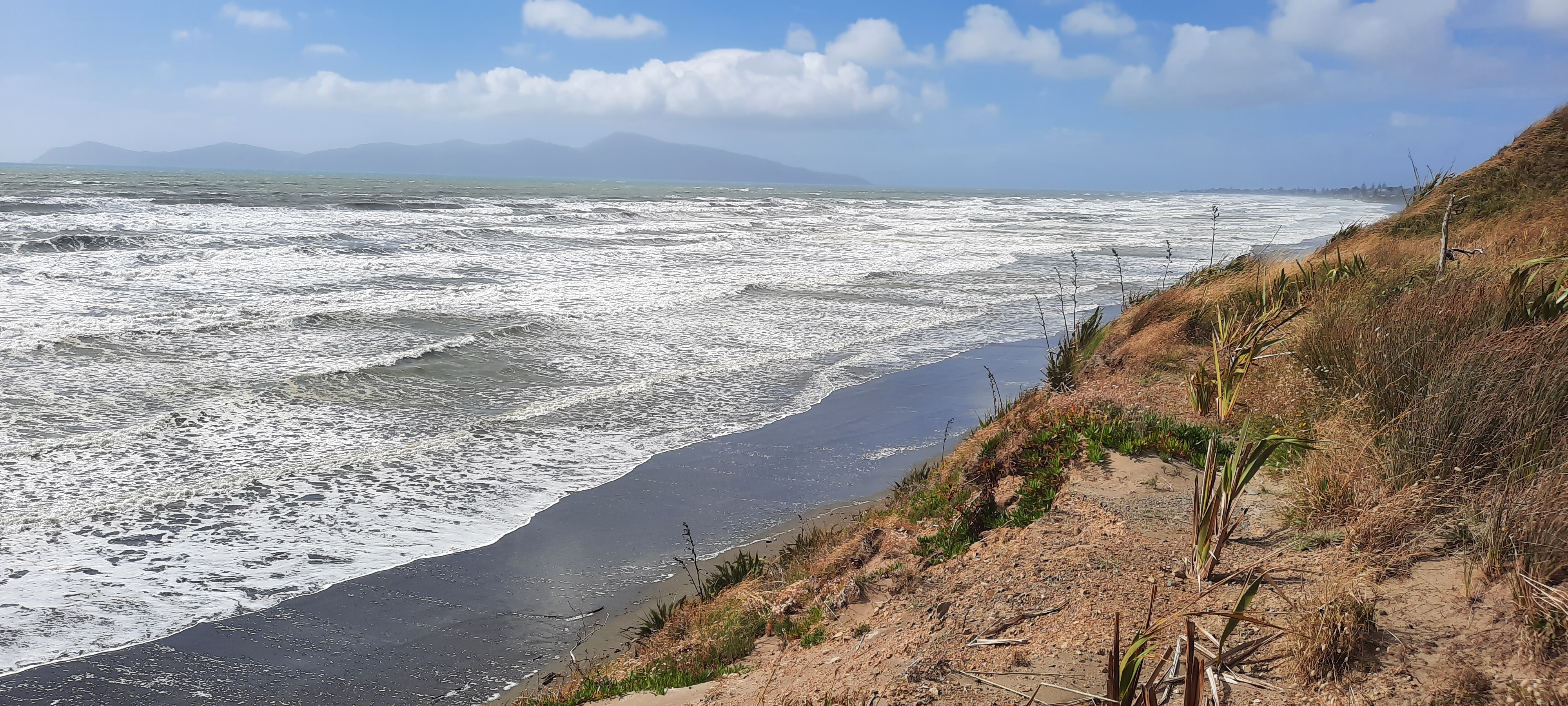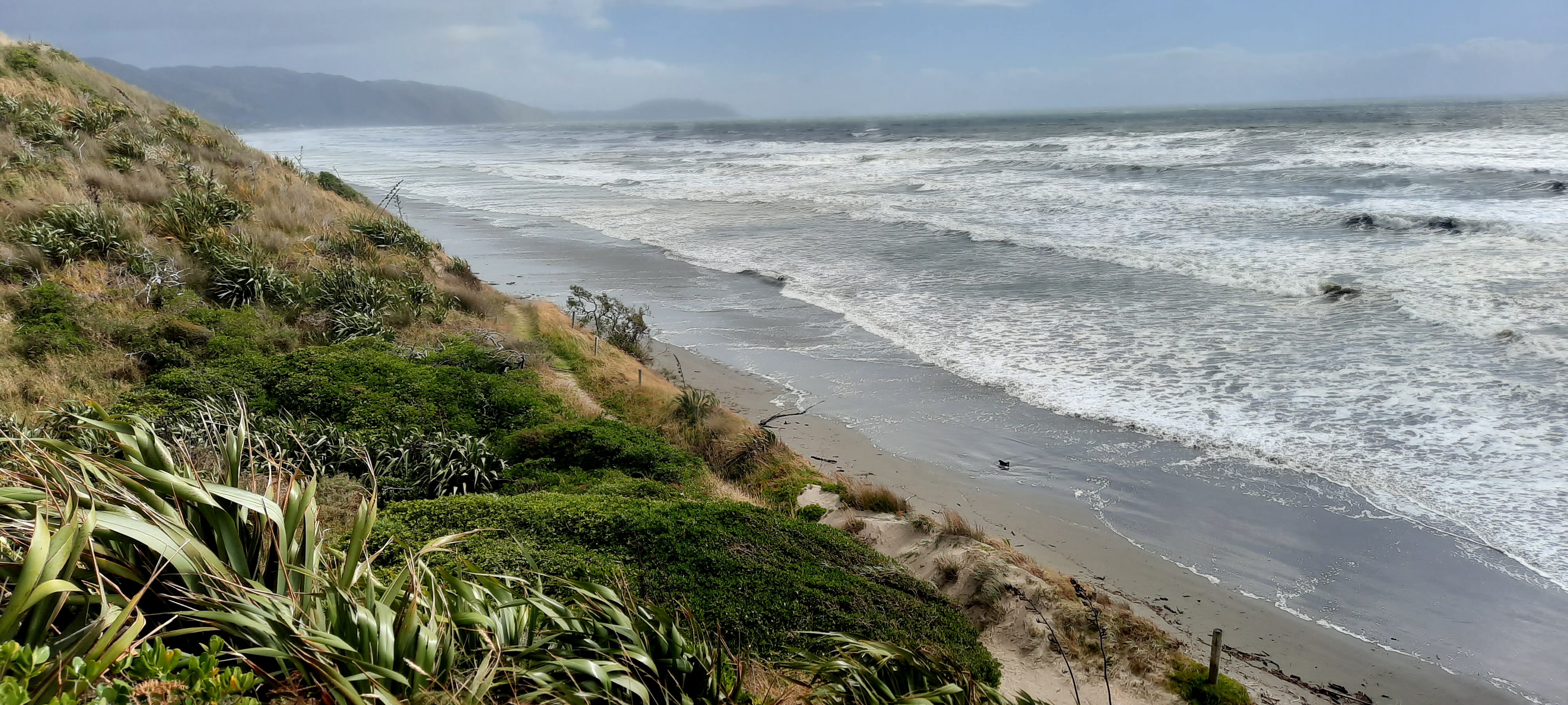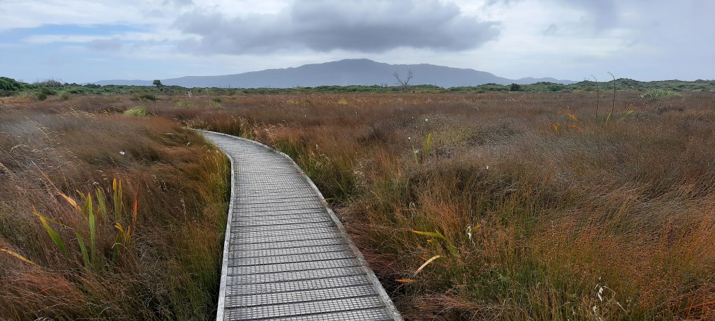 Thursday morning. The intercity bus station is located in the square. Its a couple of minutes from the hotel. Just after 10:00 am we are on the road south and 90 minutes later the bus drops me off in Waikanae. From here I am on the TA trail again and will walk to Paekakariki approx 20km away. The Waikanae river tracks are well formed and follow either side of the river from the town centre to the sea. Native bush lines much of the track, there are open grass areas and equestrian centres provide another level of interest. What attracts me most however are the profusion of ripe orange and yellow Kawakawa fruit. Usually, birds plunder the fruit well before mere mortals have a chance to pick them. I enjoy a few and keep others to take to the Smiths tonight. Leaving the shelter of the flora at the estuary, I am bearing the brunt of the westerly gale which buffets me about especially when it catches my pack. Lucky I’m not trailing a caravan.. The estuary is undergoing a restoration project to return flora and fauna with the support of volunteers and DOC. A boardwalk leads the trail through this significant area safely and soon I stumble into the Paraparaumu. I tried the beach first but the wind was too strong to make any headway so I returned to the relative shelter of the streets. From Paraparaumu the trail continues south through Raumati and Raumati South before the houses peeter out at the reserve. From here I leap off the concrete storm wall onto the beach and head for the Coastal path which meanders through the dunes all the way to Paekakariki. It is a lovely walk even with a sideways wind to keep walking interesting. Kelly meets me in Paekakariki and we return to their place for bubbles and long overdue catch up. Tomorrow – the Escarpment Track