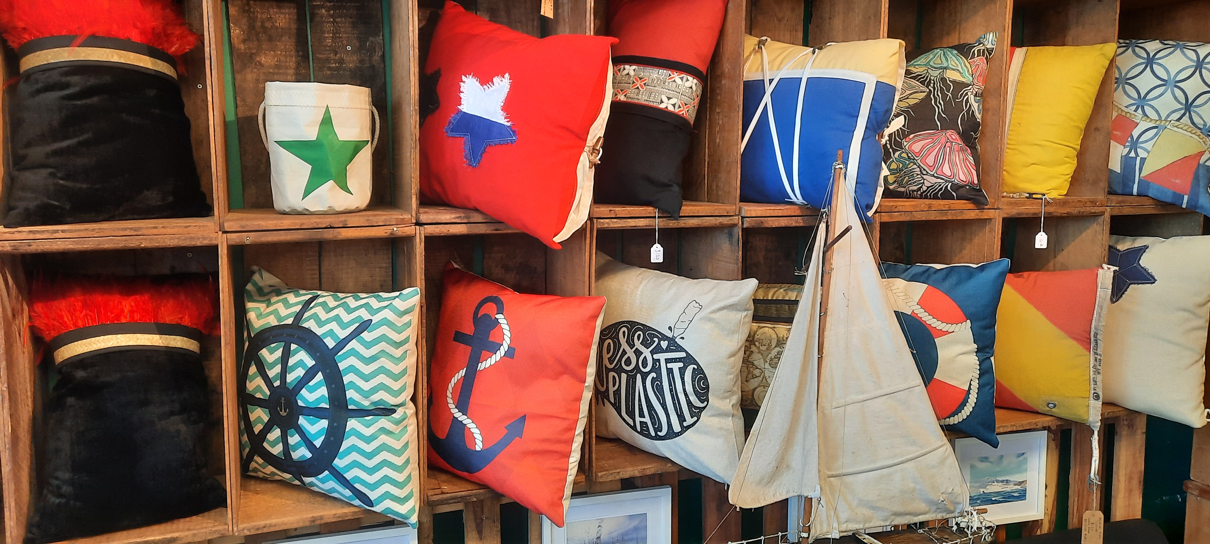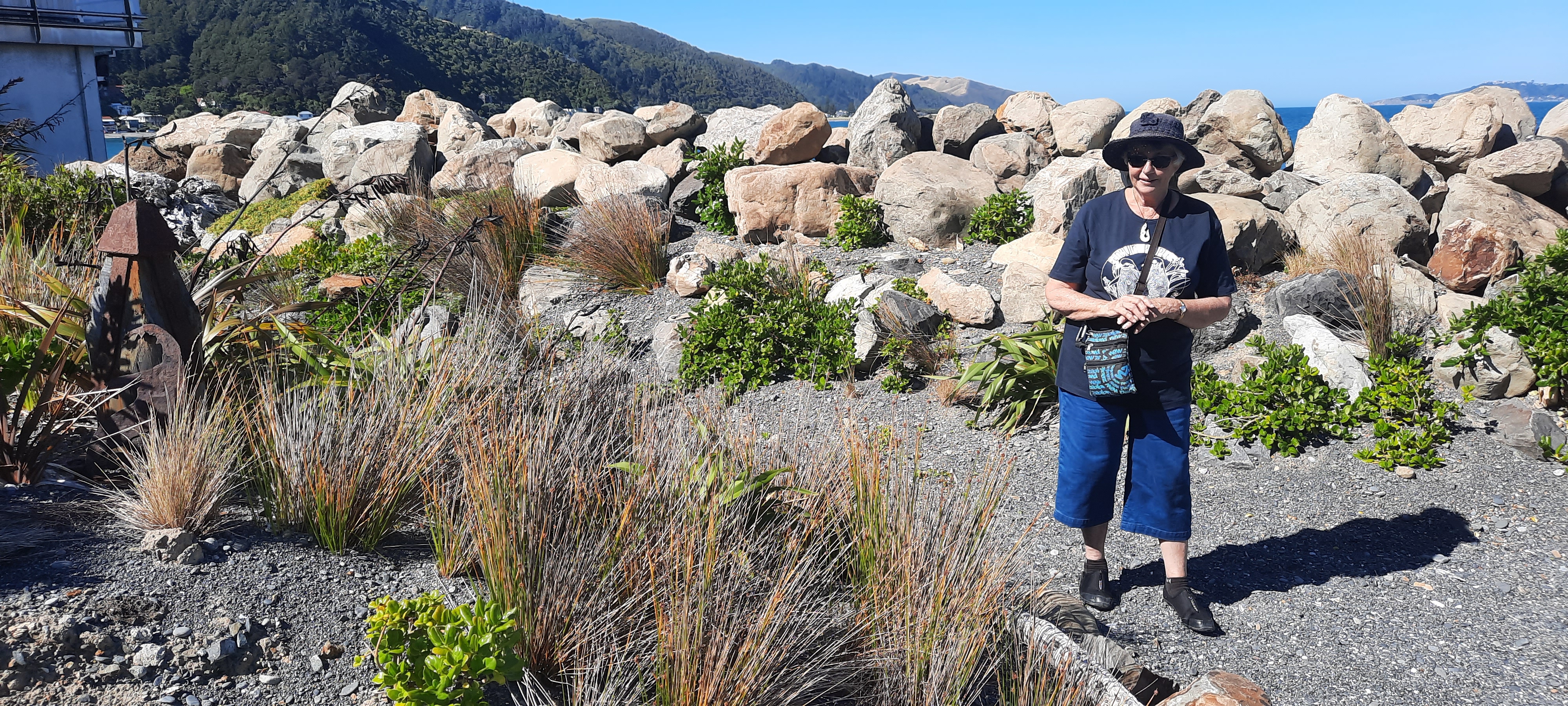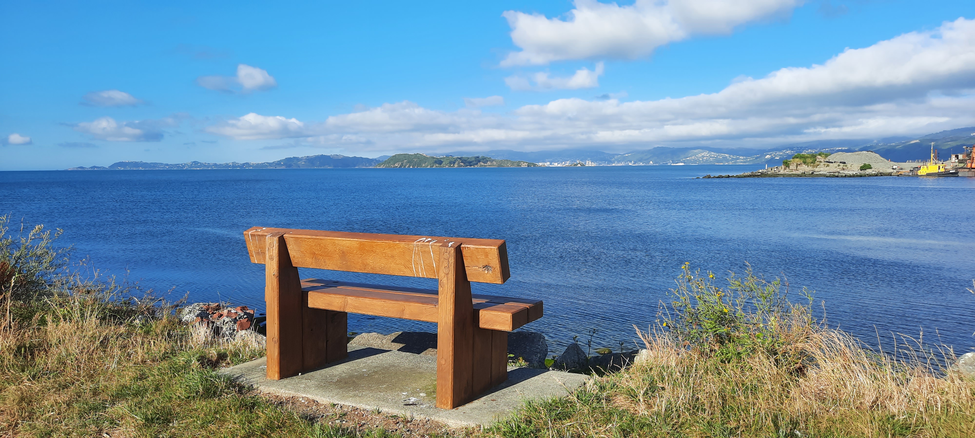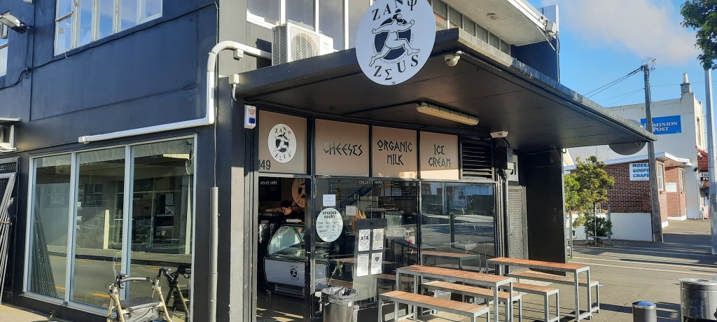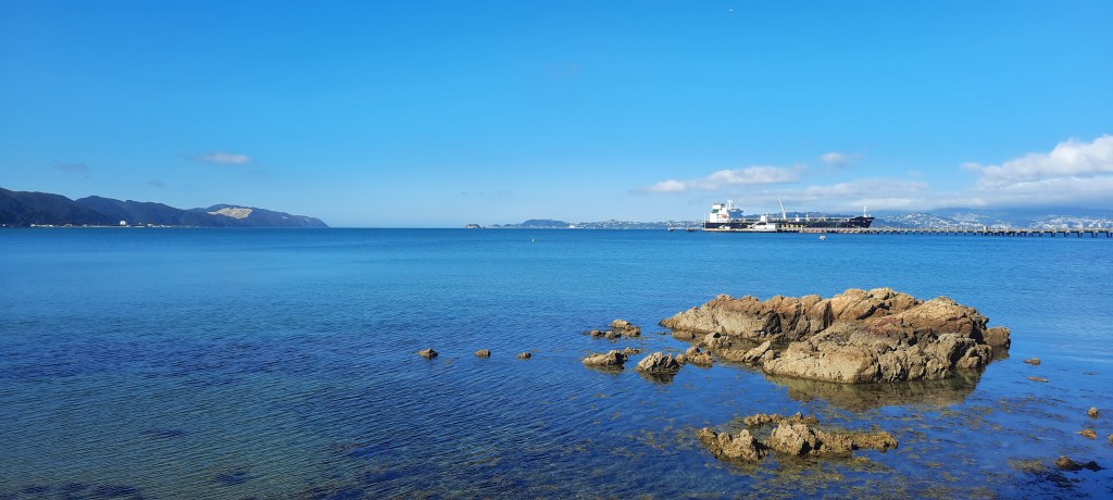 Bright and early, but not before 8:00am when Zany Zeus opens, I was pack ready to get a coffee and visit this cheese shop that Scarlett Johansson gave immediate fame to when she mentioned it had the best chocolate cake she had ever eaten. I didn’t have cake but I must say the apricot tart was pretty delicious. There is a pleasant walk to the end of the Hutt River where it flows into the Wellington harbour at Seaview with no fanfare. The view from the shore is phenomenal however as it is the first glance of Wellington city plus a full frontal of the harbour mouth far in the distance. I am fortunate that the Shipwreck Trading store is open and I can browse the fascinating collection of nautical and downright cool stuff that fills every nook and cranny. From here the paved cycleway bisects a marina to join the road down the coast towards Eastbourne. It is only about 5km around the coastline to Days Bay where I will catch the 10:40am ferry across to Wellington and I have around 90 minutes to stroll there. The little bays have much to see and admire; an everchanging sea view, people cooling off in the sea and architectural styles of the decades.
