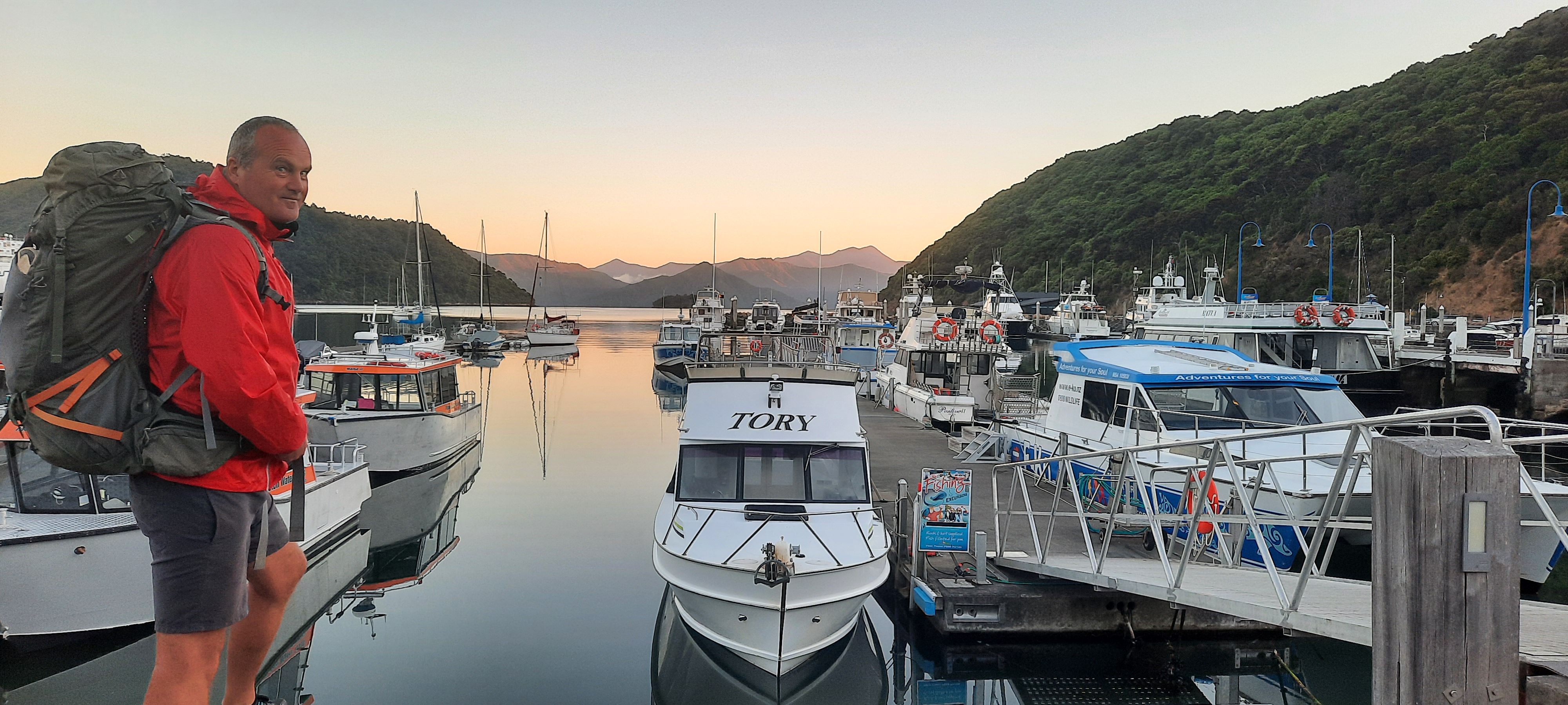 It felt like I had barely put my head on the pillow when my alarm went off at 1am. I jumped out of bed and had a quick shower before heading across the street to the ferry terminal. Inside, I checked in my pack and then JoJo turned up which was a nice surprise as I thought that he had gone across the strait yesterday. We walked onboard together and found two rows of chairs in the forward lounge that could become our beds for the 3.5 hour journey to Picton. The ferry departed shortly after 2.30am and we chatted and caught up for a while before trying to squeeze ourselves onto chairs that are not designed for sleeping on. The onboard cabins were fully booked – I had checked. When I woke up we were in the Queen Charlotte Sound so I guess I must have dozed for a couple of hours and before we knew it we were berthed and walking off into Picton. JoJo will be taking the water taxi to Ships Cove this morning to start the Queen Charlotte Track, the first section of his TA journey down the South Island. I spent time catching up with friends at Sounds Connection, Beachcomber and Marlborough Sounds Adventure Co until it was time to catch the 1pm bus to Nelson. Covid protocols called for mask wearing on all public transport (not ferries) and Intercity had sent an email and text to advise that a mask was necessary. Some wore masks and others did not.